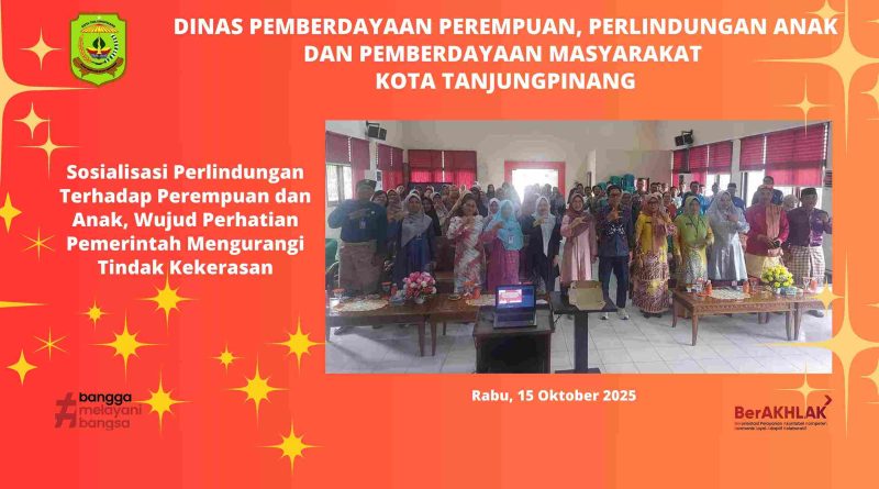 Dinas Pemberdayaan Perempuan, Perlindungan Anak dan Pemberdayaan Masyarakat (DP3APM) kota Tanjungpinang menyelenggarakan Sosialisasi Penggerakan dan Pemberdayaan Masyarakat dalam Pencegahan Kekerasan Terhadap Perempuan dan Anak, Tindak Pidana Perdagangan Orang, serta Anak yang Berhadapan dengan Hukum dan Perkawinan Usia Anak. Kegaiatan dibuka Asisten Perekonomian dan Pembangunan Setdako Tanjungpinang, Elviani Sandri mewakili Wali Kota Tanjungpinang Lis Darmansyah, di Aula Dinas Sosial kota Tanjungpinang, Rabu (15/10/2025).